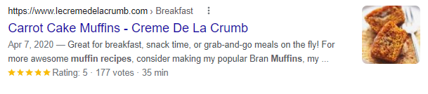 Recipe schema markup is one of the types of markup that would be most familiar to readers. When users search the name of a particular recipe, most if not all will use schema markup to decide whether the recipe looks enticing. For a recipe, users expect to see: